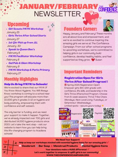 Your girl will enjoy hands-on activities to build confidence, learn healthy hygiene habits, practice self-care, and celebrate body positivity. PLUS — each participant goes home with her own personal hygiene kit to put her new skills into action! 💄🧴💪